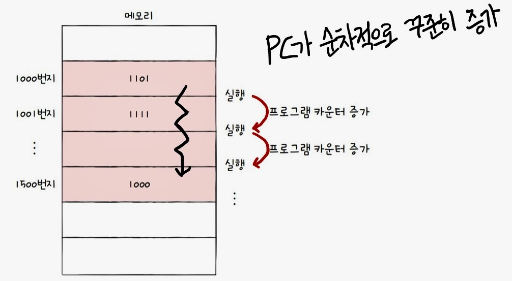 따라서 일반적인 케이스는 PC가 꾸준히 증가하며 프로그램을 차례대로 실행시킨다