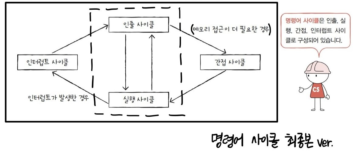 하지만 메모리 접근이 더 필요한 경우에 간접 사이클 단계를 더 거치게 된다