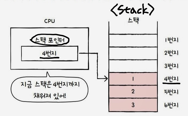 7. 스택 포인터: 스택의 꼭대기(마지막으로 저장한 값의 위치)