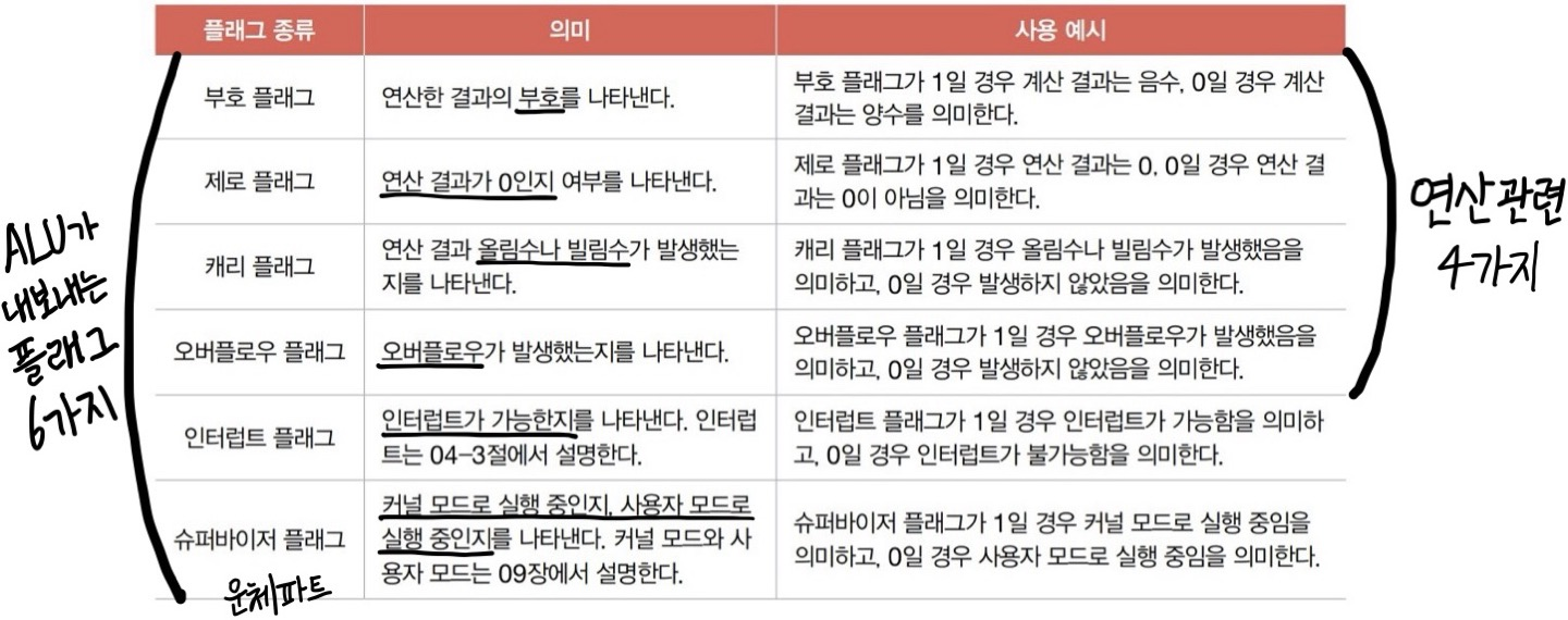 이 플래그들은 모두 플래그 레지스터에 저장된다