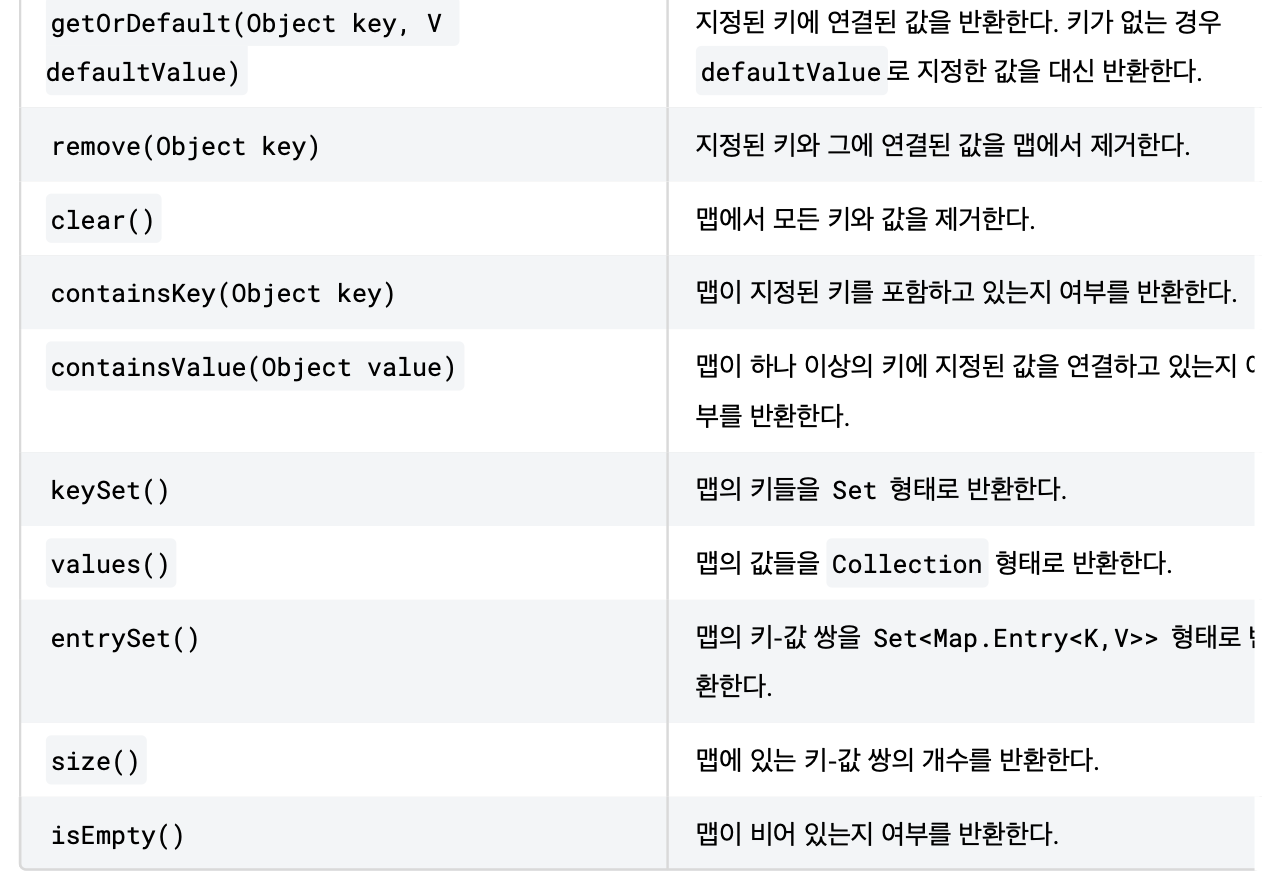 (맵 인터페이스는 컬렉션 인터페이스를 상속받지 않는다)