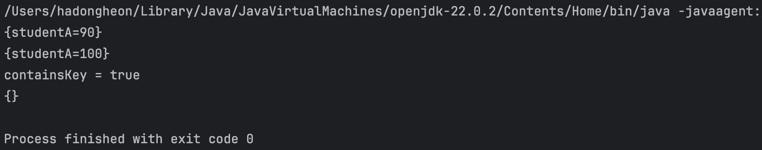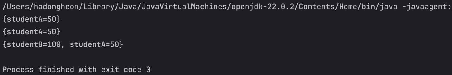 studnetMap.put("studentA", 100); // 같은 키에 저장시 기존 값 교체