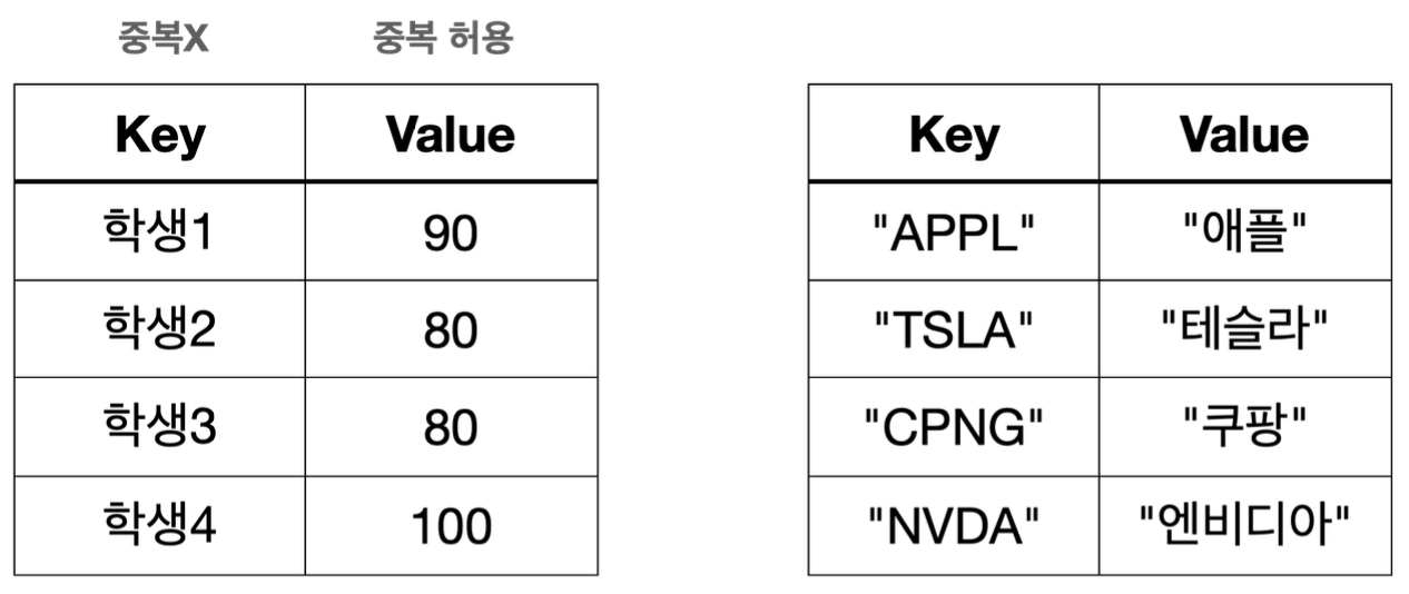ㅁMap: 키-값 쌍을 저장하는 자료구조