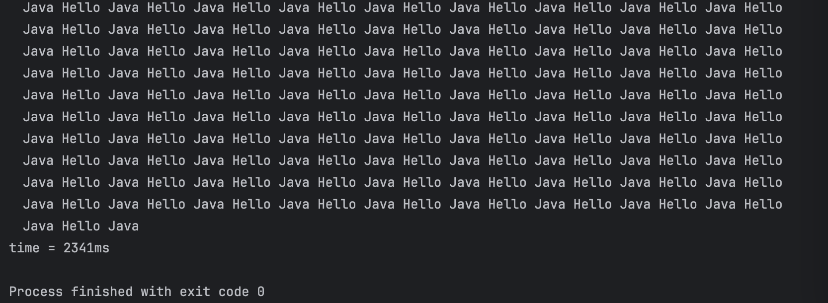 반복문의 범위가 100000일 때, StringBuilder를 사용하지 않으면 2341ms가 걸린다