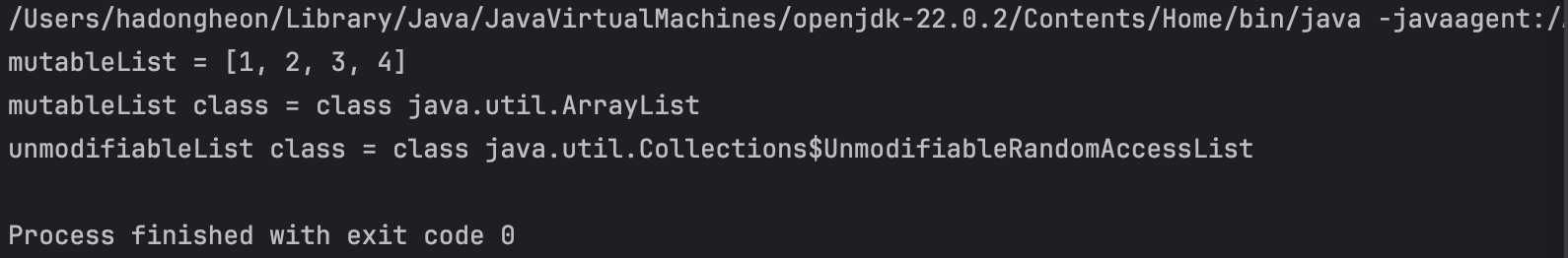 // 불변 리스트로 다시 전환: Collections.unmodifiableList() 사용
